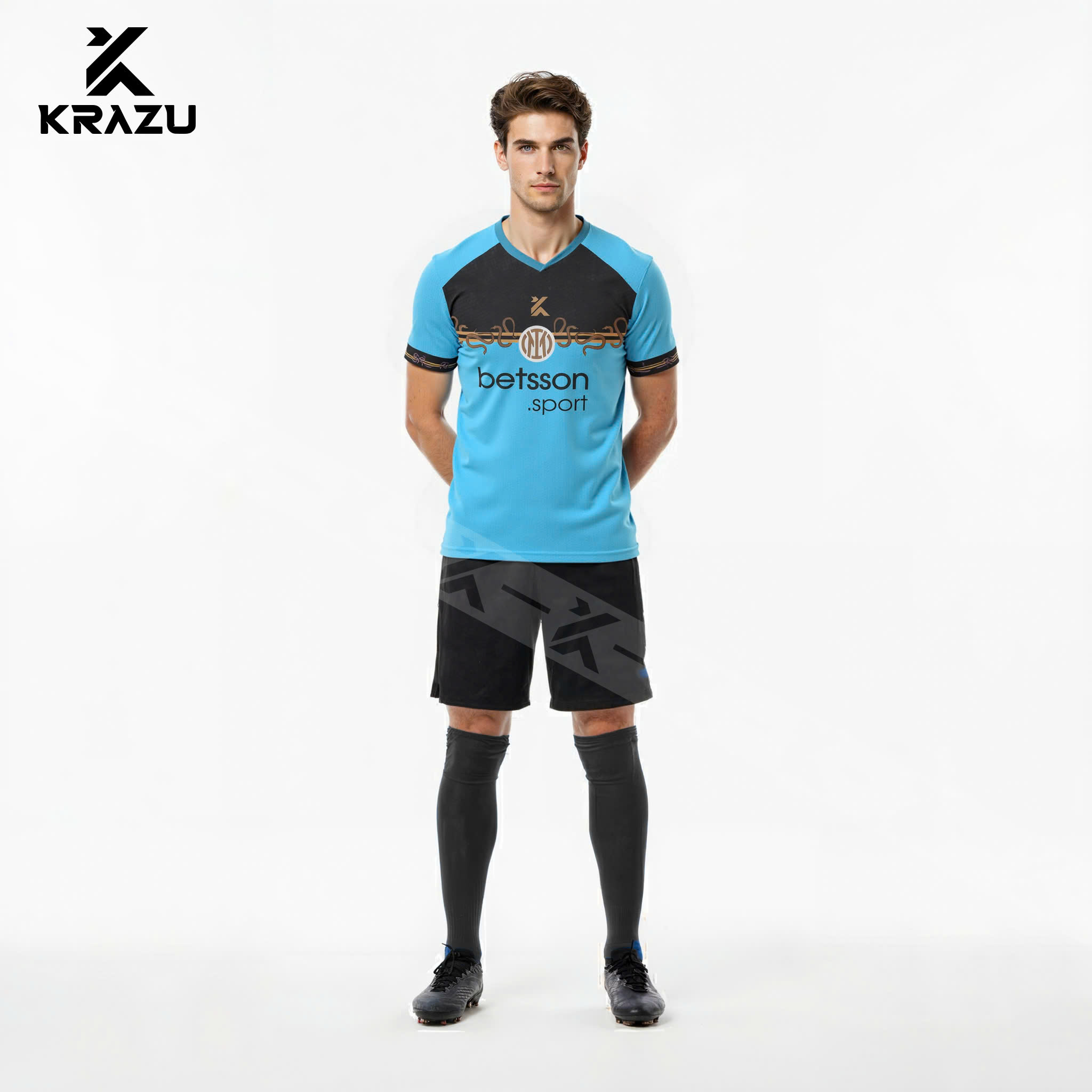 Điểm nhấn: Họa tiết sọc được thiết kế theo phong cách ngẫu hứng và năng động, phản ánh sự nhiệt huyết trên sân cỏ. Logo nhà tài trợ và logo Krazu được bố trí hài hòa.